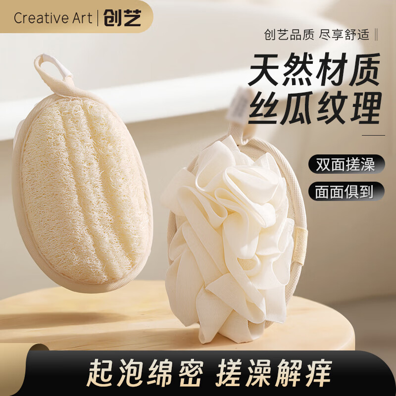 Creative art搓澡巾男女士丝瓜络搓澡沐浴球浴花球不散丝瓜瓤洗澡神器搓背巾