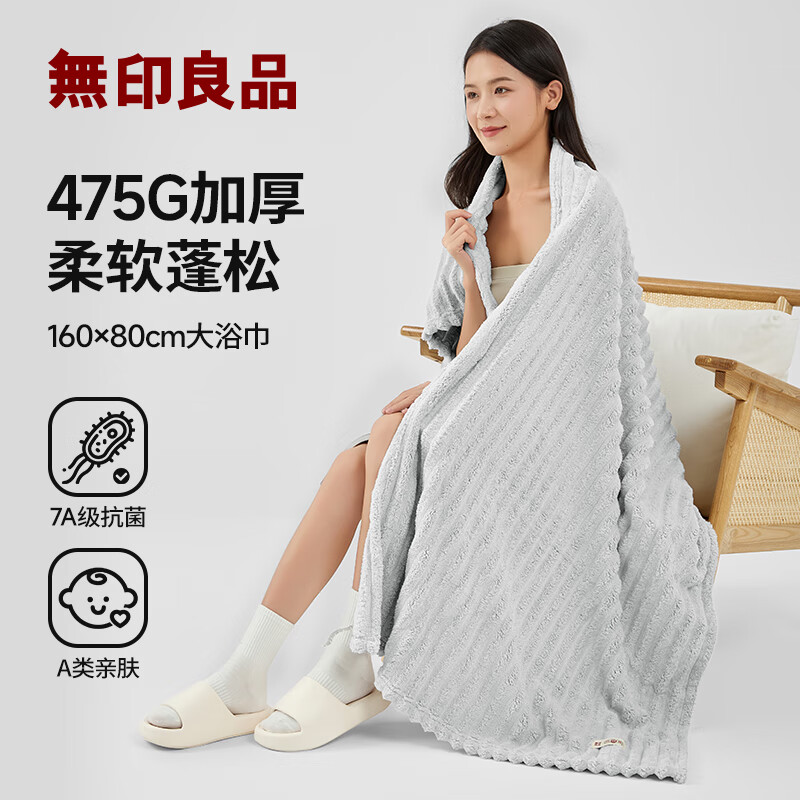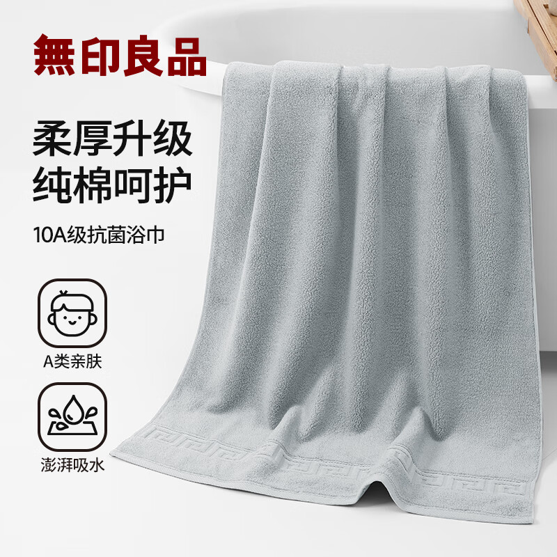 无印良品浴巾7A级抗菌亲肤柔软吸水速干475g加厚不易掉毛男士加大浴巾浅灰