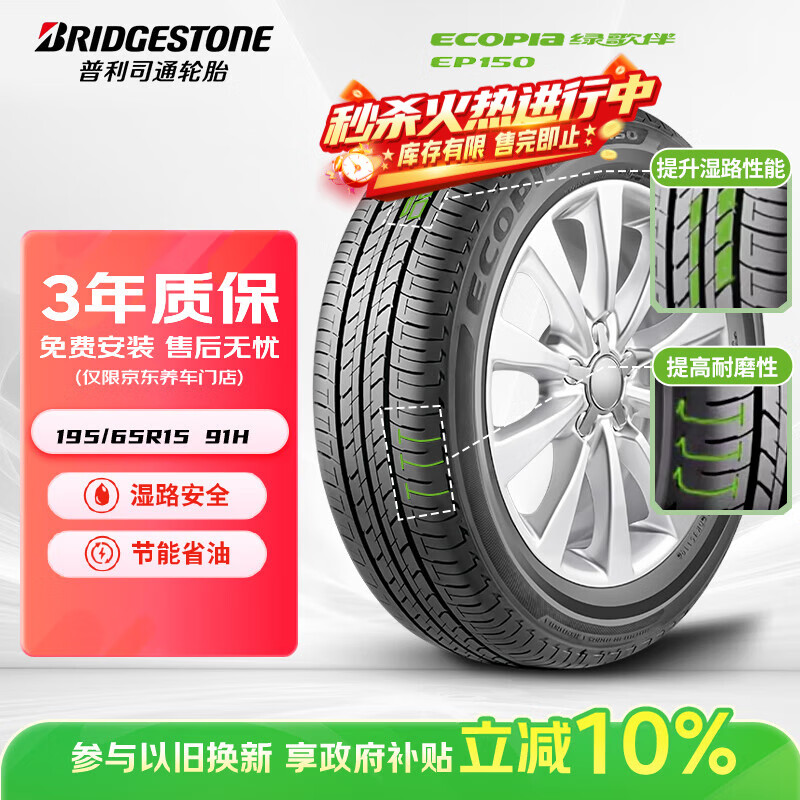 普利司通(Bridgestone)汽车轮胎 195/65R15 91H EP150 原配丰田新雷凌 适配卡罗拉