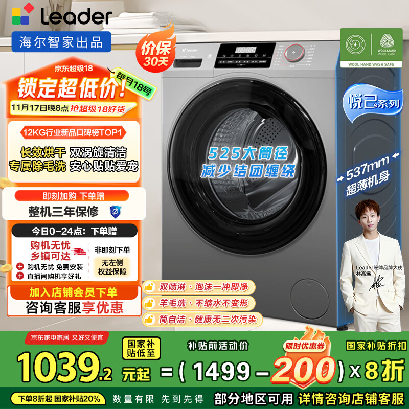 统帅(Leader)海尔智家出品滚筒洗衣机全自动京东自营 10公斤家用超薄大筒径 以旧换新国家补贴XQGL100-LJ526H