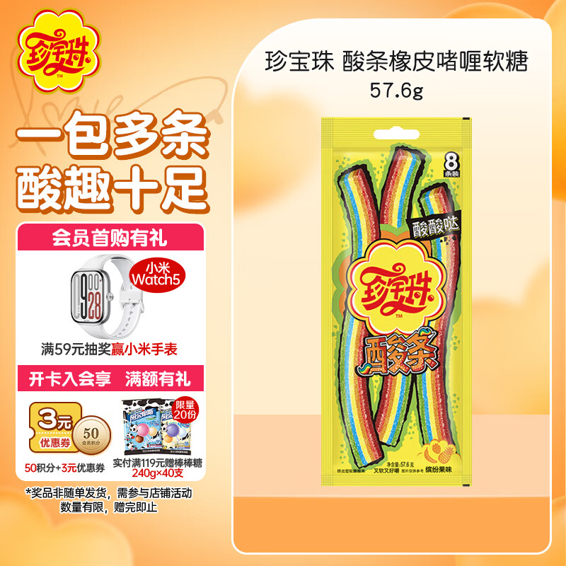 珍宝珠 酸条橡皮啫喱软糖57.6g(8支) 儿童趣味休闲零食彩虹条