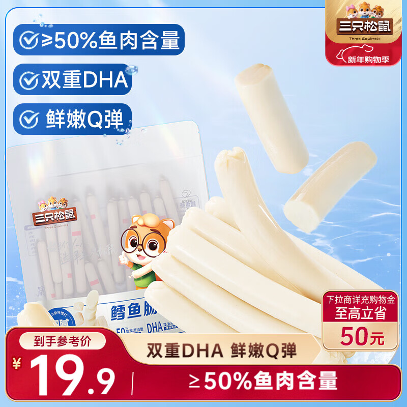 三只松鼠鳕鱼肠原味640g约80根 营养高蛋白解馋休闲即食鱼肠儿童