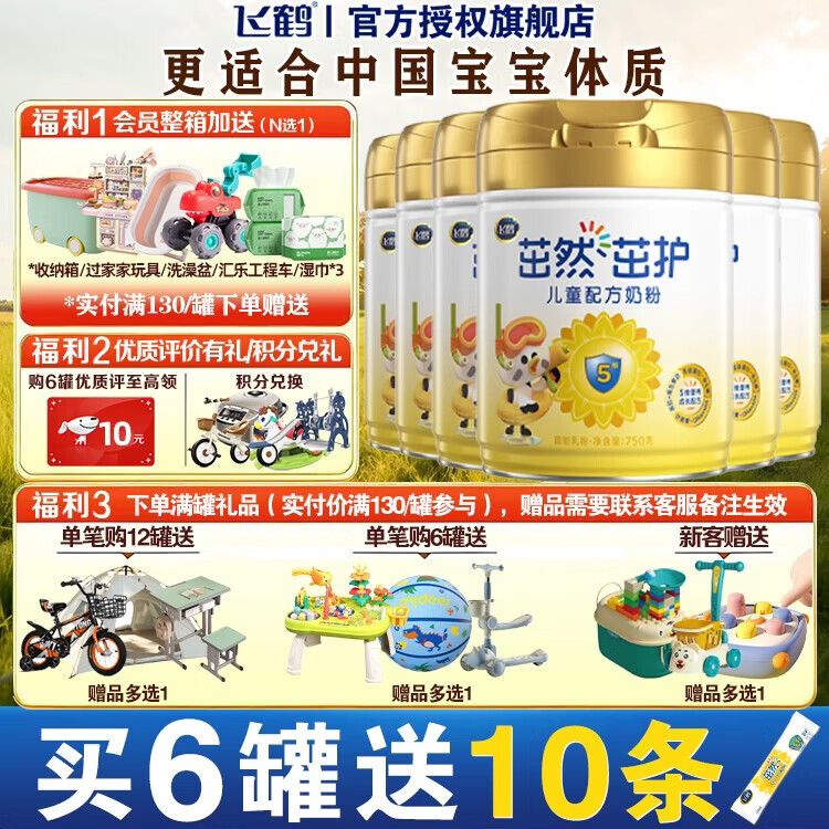 飞鹤茁然-茁护 全面营养自护力儿童奶粉 4段(3-6岁适用) 750g*6罐(买6送10)