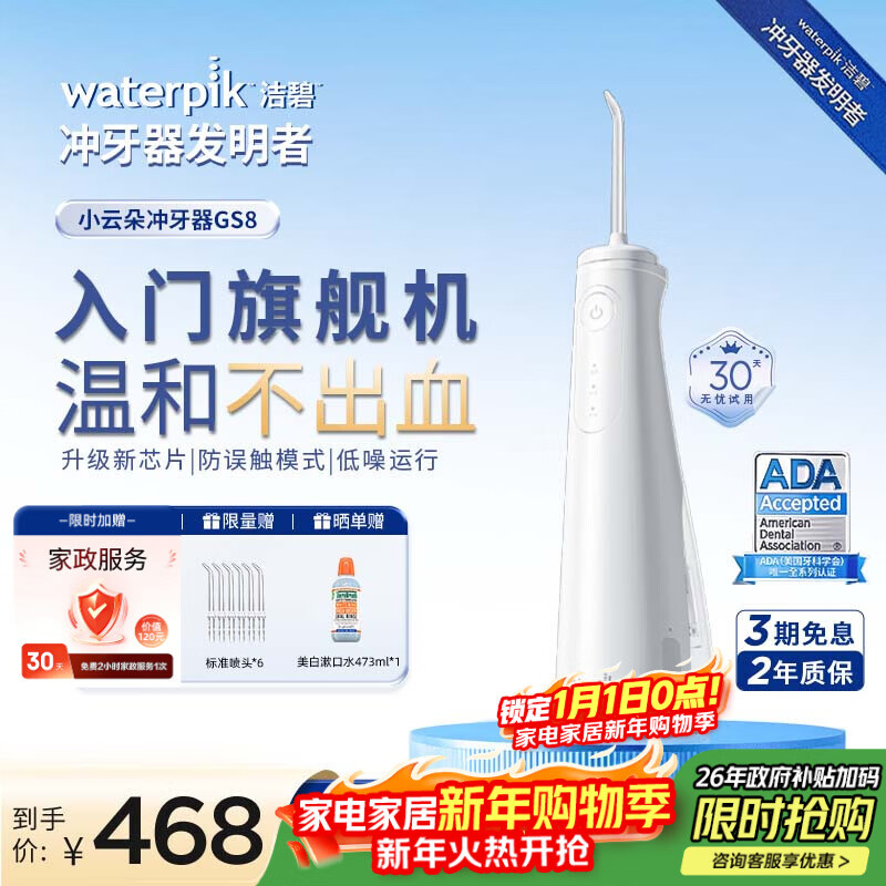 洁碧冲牙器小云朵GS8【专业正畸】便携式电动洗牙器水牙线洁牙器 圣诞节礼物