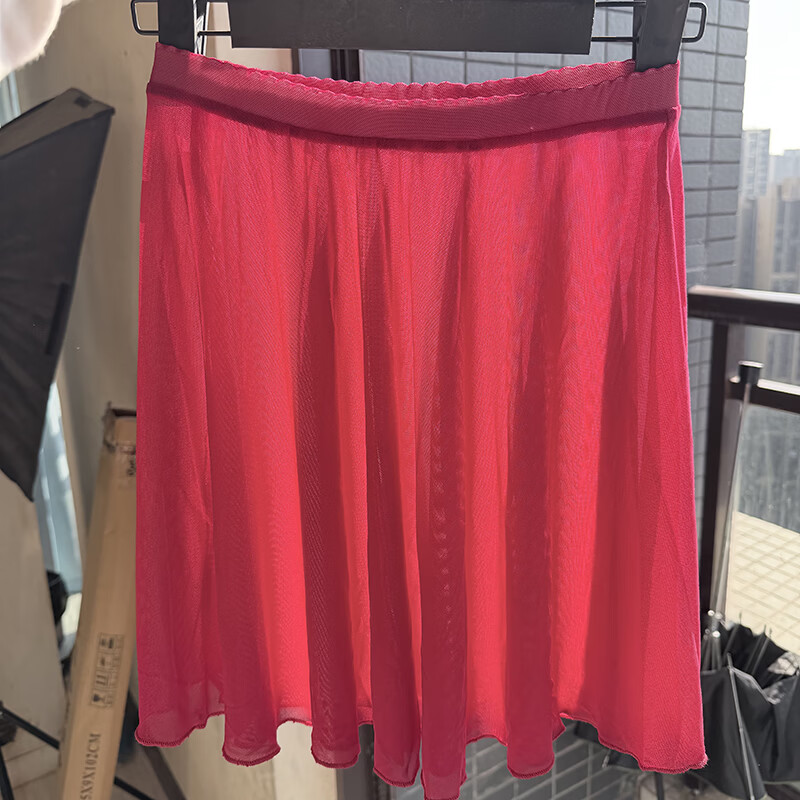 云襟弹力网芭蕾舞裙女形体基训体操服舞蹈练功服纱裙半身裙 红色 均码