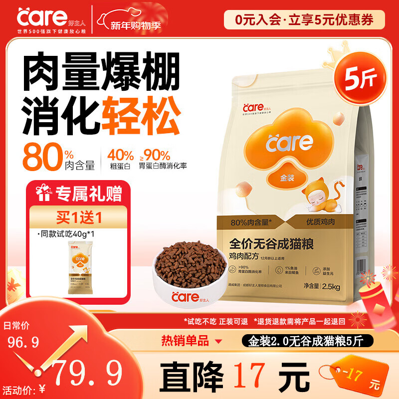 好主人金装好主人猫粮2.0 成猫幼猫蓝猫英短通用全价无谷冻干 【升级金装80%含肉量】成猫粮5斤
