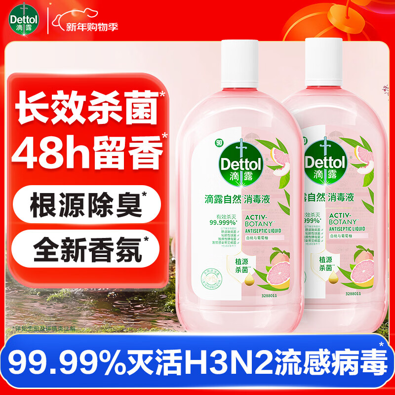 滴露自然香氛消毒液洗衣持久留香 衣物玩具杀菌 除臭宠物用品消毒水 【香氛洗衣 杀菌留香】自然消毒液1L*2