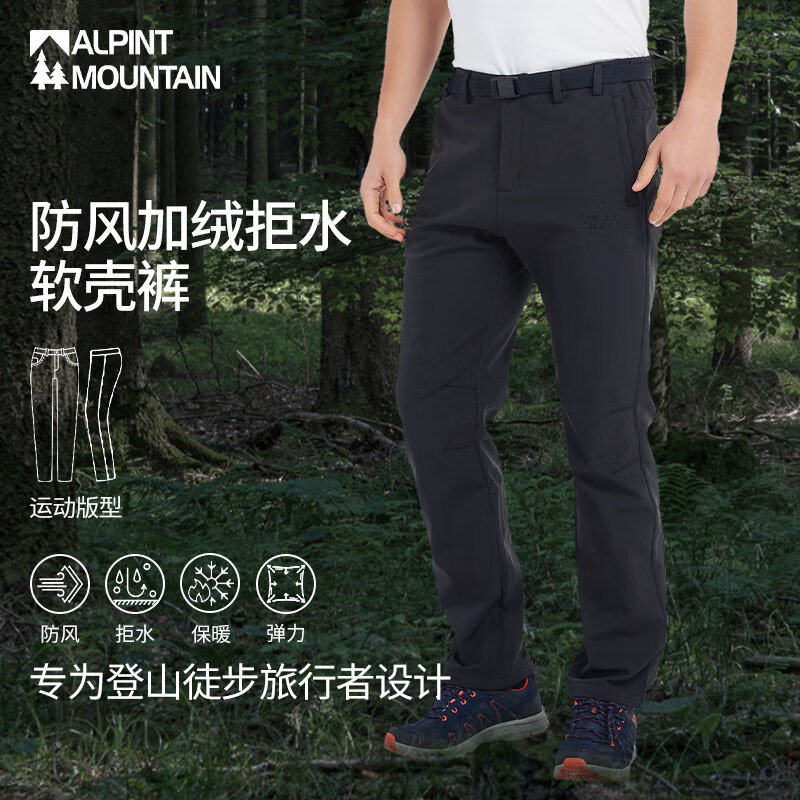 ALPINT MOUNTAIN埃尔蒙特加绒软壳裤男款秋冬户外防寒徒步裤女冬季抓绒防水冲锋裤