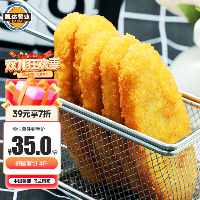 凯达薯业香脆冷冻椭圆原切大薯饼4斤薯条半成品空气炸锅食材佐餐小食