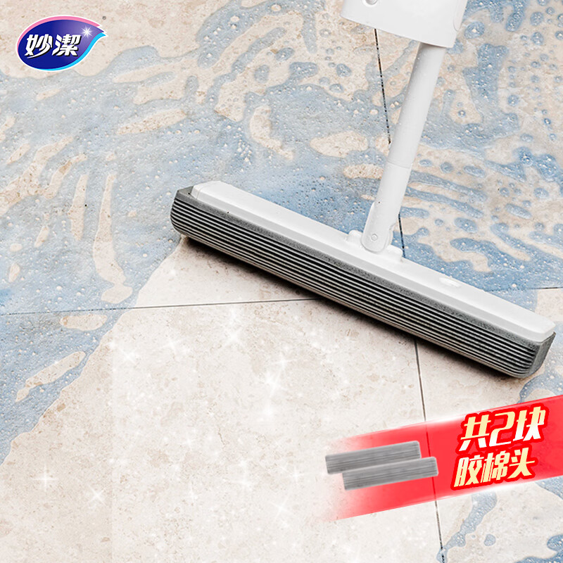 妙洁胶棉拖把33cm杆长145共2头推拉式大懒人家用一拖净免手洗海绵吸水