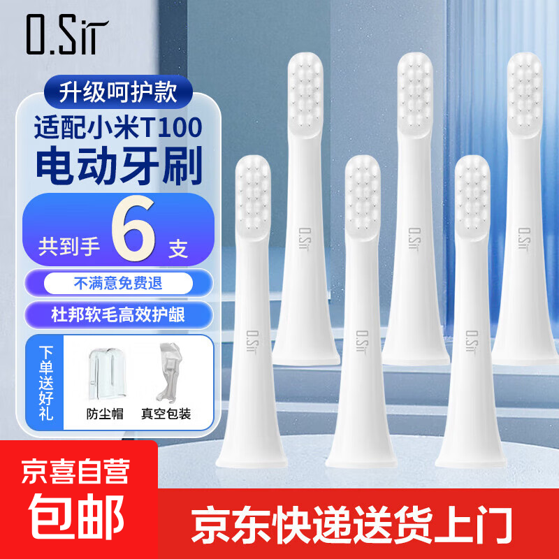 O.Sir适配小米电动牙刷头T100/T200/T300/T500/T700多型号细软刷毛适用米家声波电动牙刷杜邦软毛 【日常清洁型】适配T100通用型 6支