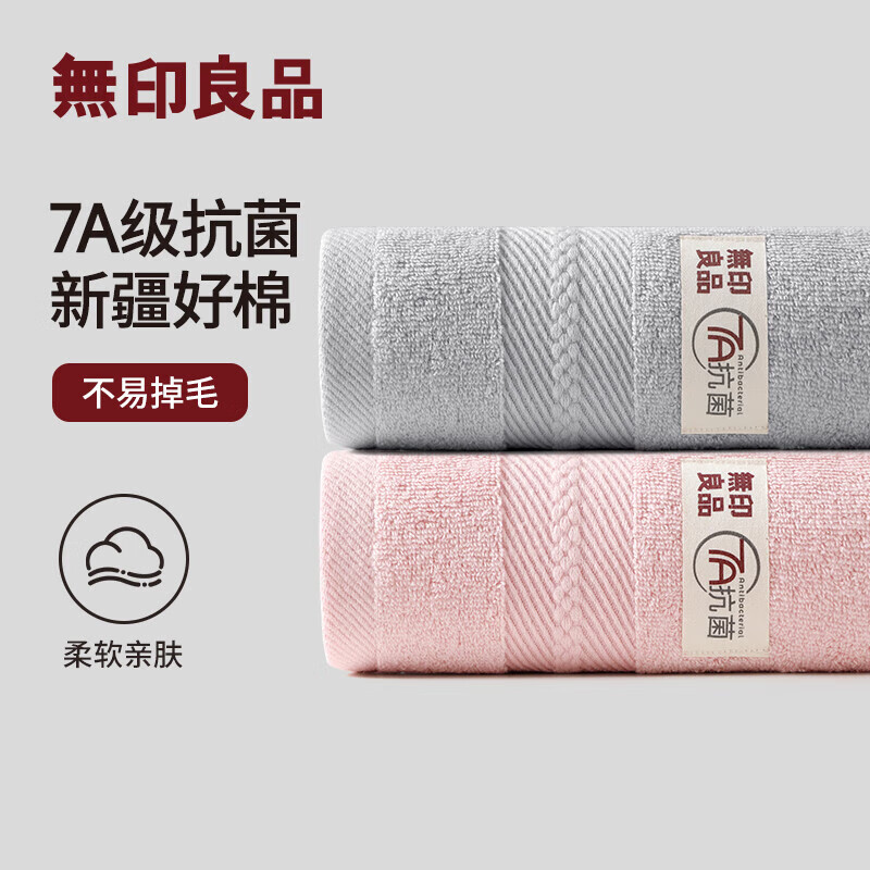 无印良品毛巾7A抗菌新疆棉不易掉毛加厚2条装A类100%纯棉亲肤男女擦脸巾