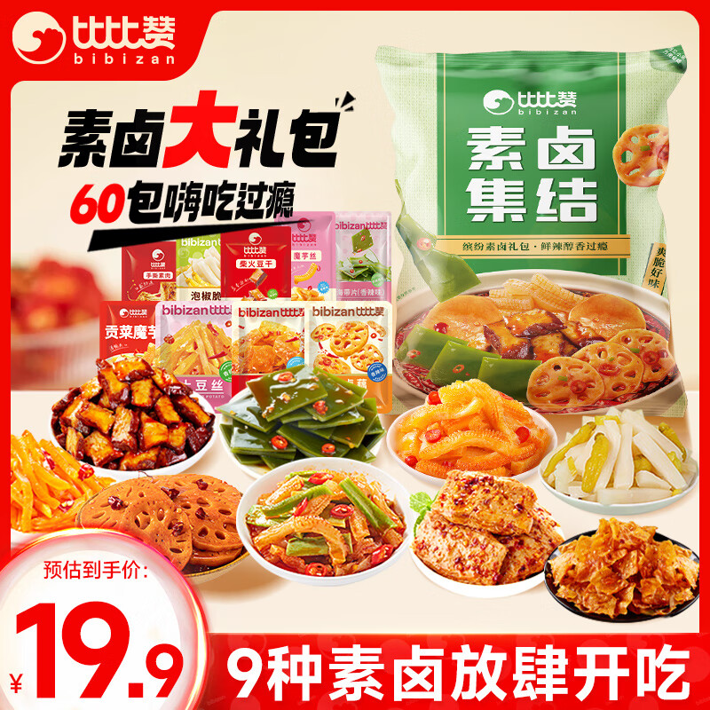 比比赞(BIBIZAN)素卤礼包60包魔芋海带脆笋即食素食卤味休闲零食团购送礼630g