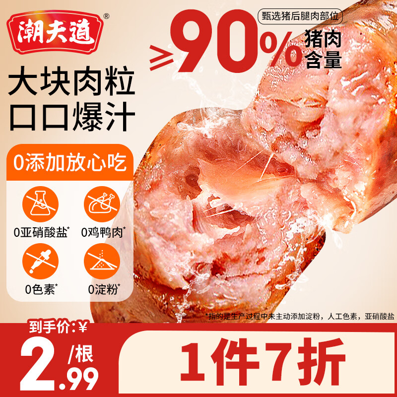 潮夫道纯猪肉烤肠1斤10根0淀粉香肠热狗火腿肠早餐空气炸锅烧烤食材