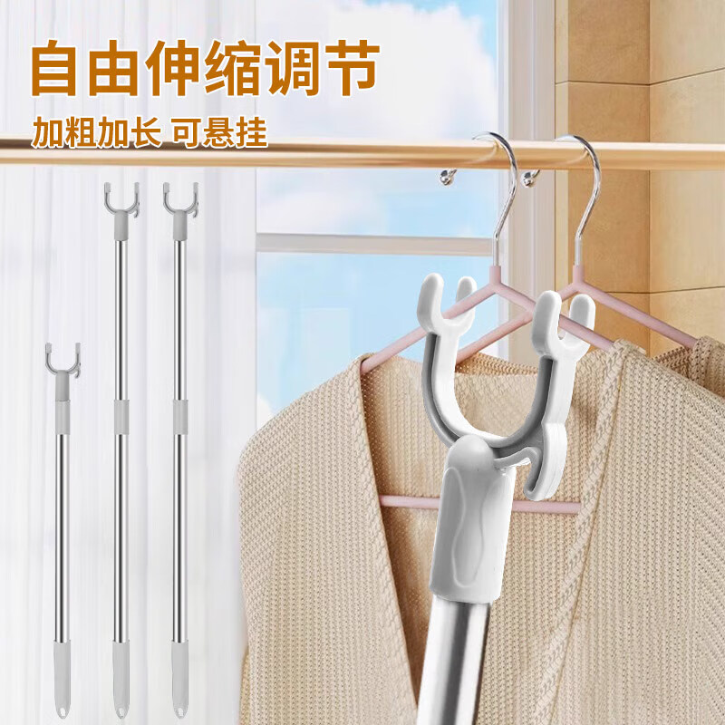 京佳宜可伸缩晾衣杆取衣调节撑衣杆衣架【加厚】不锈钢衣叉挑衣杆时尚灰