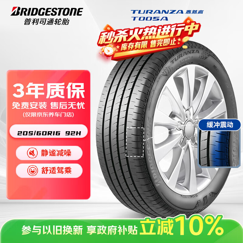 普利司通(Bridgestone)汽车轮胎 205/60R16 92H T005A 原厂配套日产轩逸