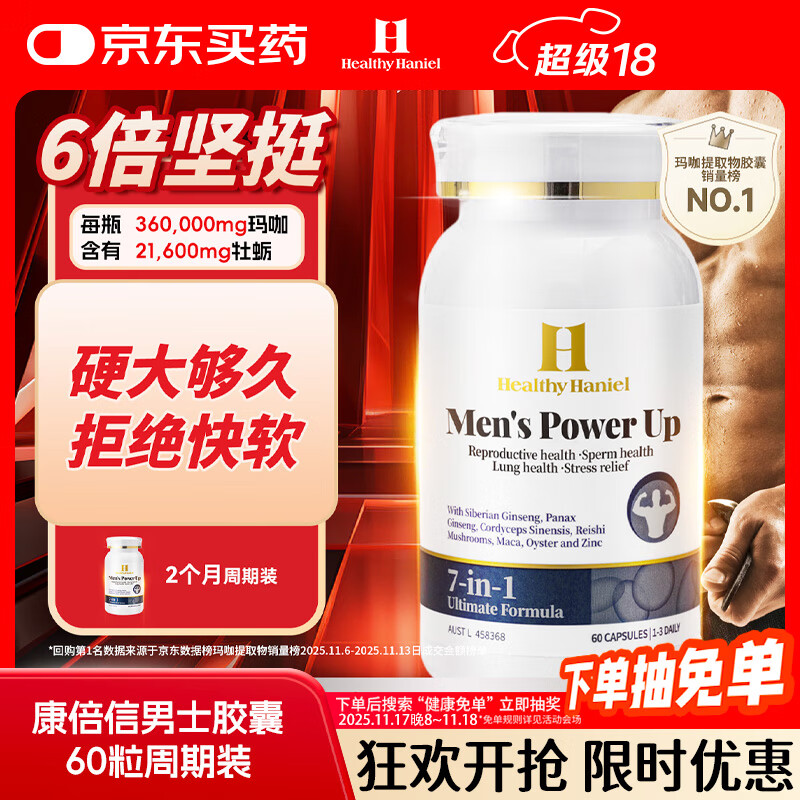 Healthy Haniel康倍信肾滋补降敏延时补锌胶囊 玛咖牡蛎灵芝虫草7效合1 60粒