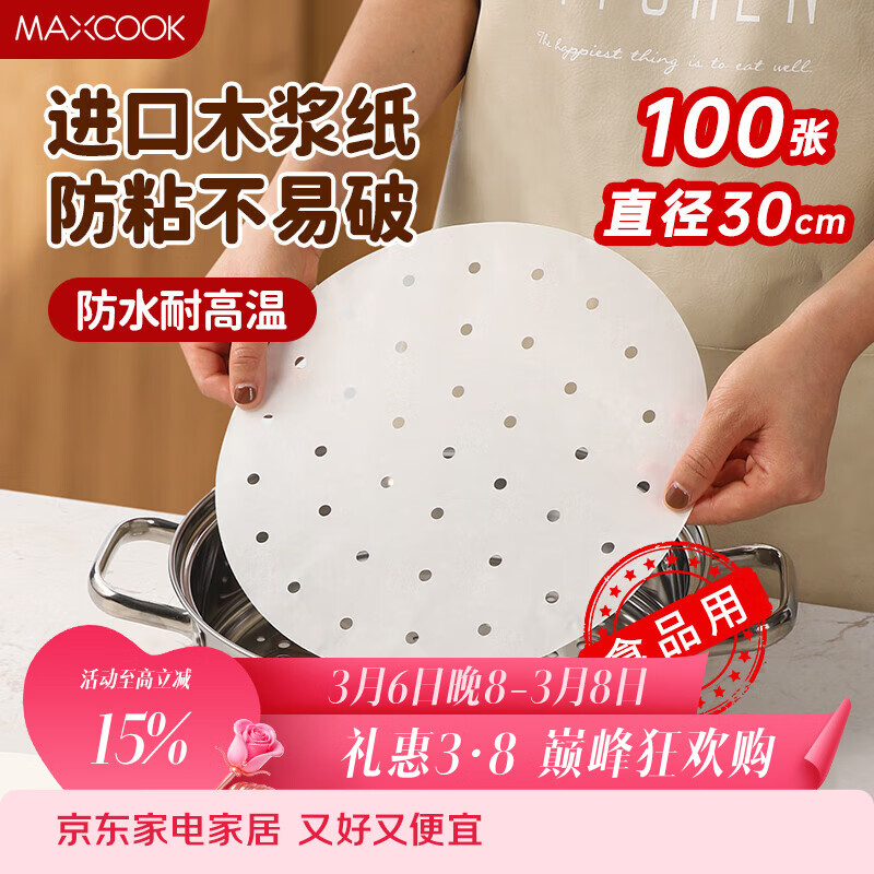 美厨(MAXCOOK)蒸笼纸包子垫纸蒸包子纸蒸馒头纸一次性100张 直径30cm MCPJ4292