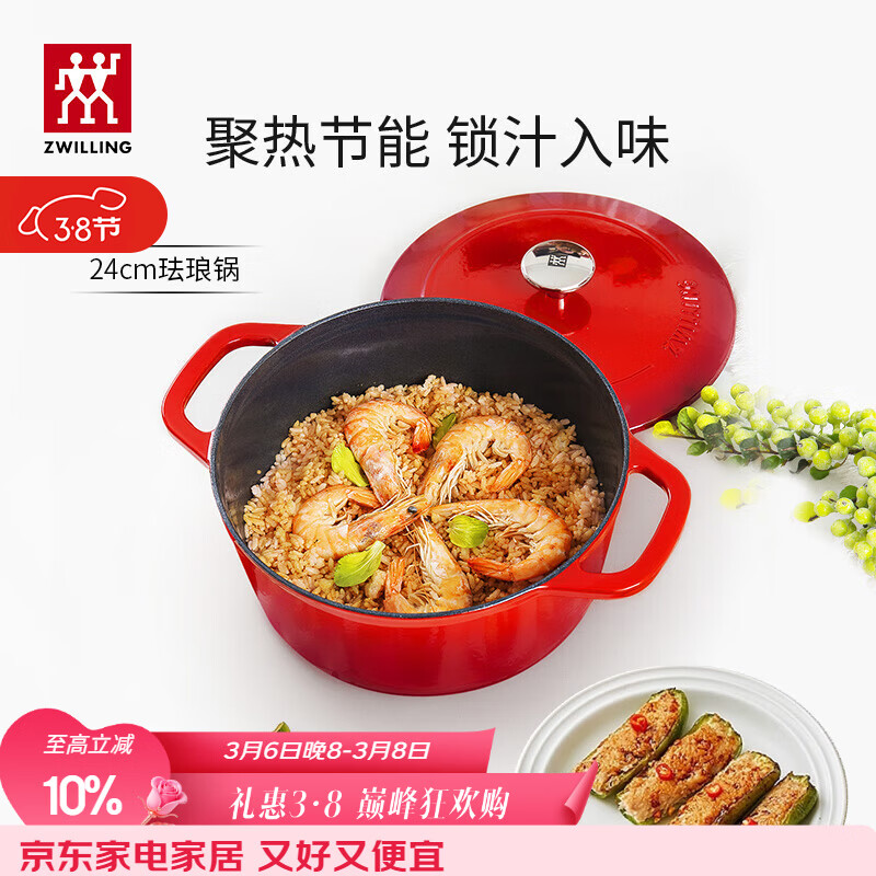 双立人(ZWILLING)珐琅锅铸铁锅汤锅圆形炖锅煲汤锅炖肉锅燃气电磁炉通用 红色24cm