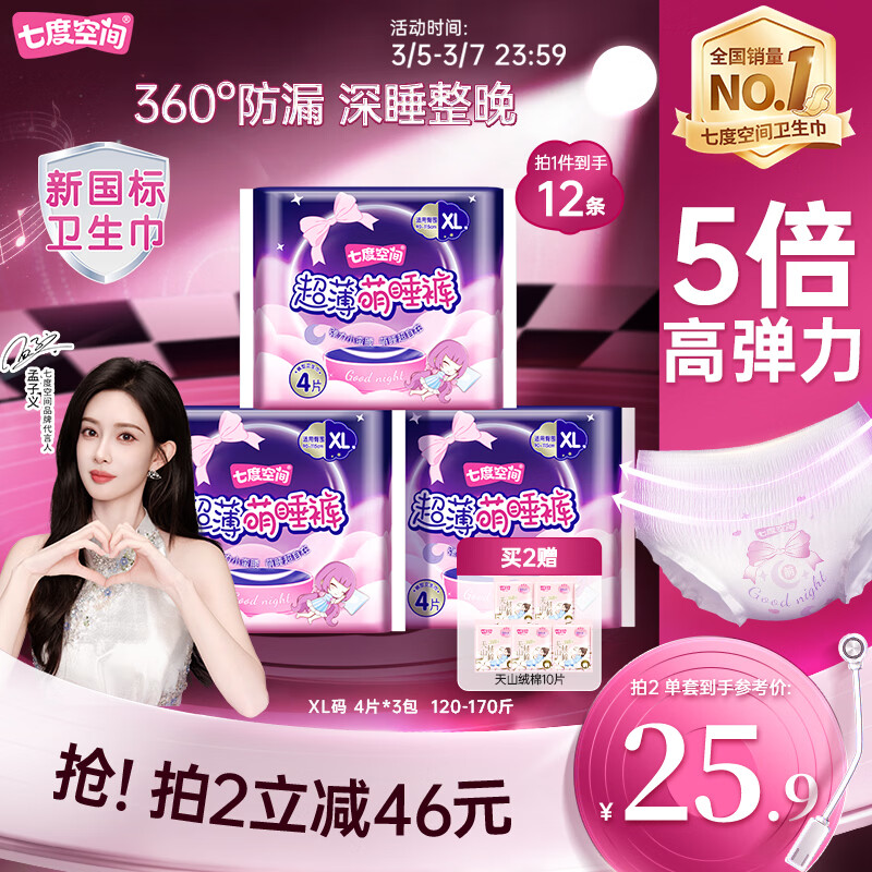 七度空间萌睡安心裤超长夜用安睡裤大码裤型巾L-XL码12片【新国标认证】