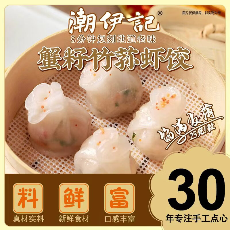 潮伊记蟹籽竹荪虾饺250g 广式早茶点心速食下午茶方便快捷茶楼酒楼同款