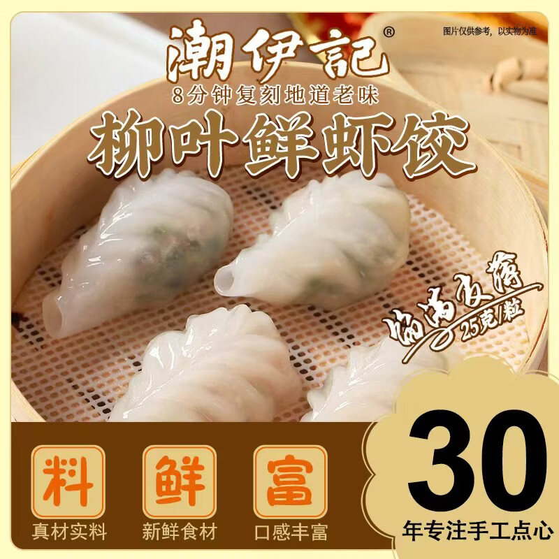 潮伊记柳叶鲜虾饺250g 广式早茶点心速食下午茶方便快捷茶楼酒楼同款