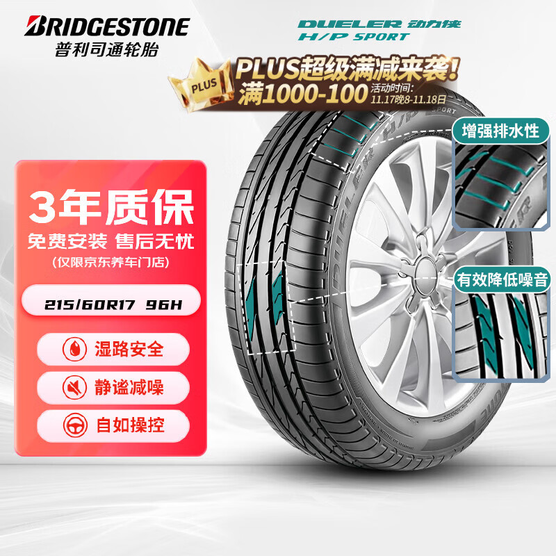 普利司通(Bridgestone)汽车轮胎 215/60R17 96H H/P SPORT 配套逍客/T70/伊泽