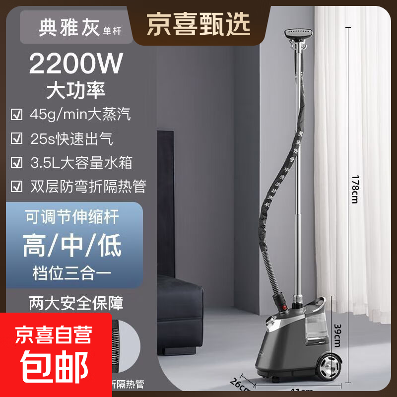 甲壳虫立式蒸汽挂烫机商用家用立式电熨斗熨衣机烫衣机熨衣服手持立式熨衣服机大功率服装店专用 【基础单杆】羌灰色2200w