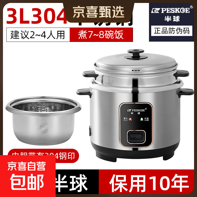半球电饭锅家用多功能 304不锈钢无涂层内胆可蒸煮 2-6升l1-8人用单人小型宿舍用 一键老式电饭煲 304不锈钢内胆+普通不锈钢笼 3L 2-4人