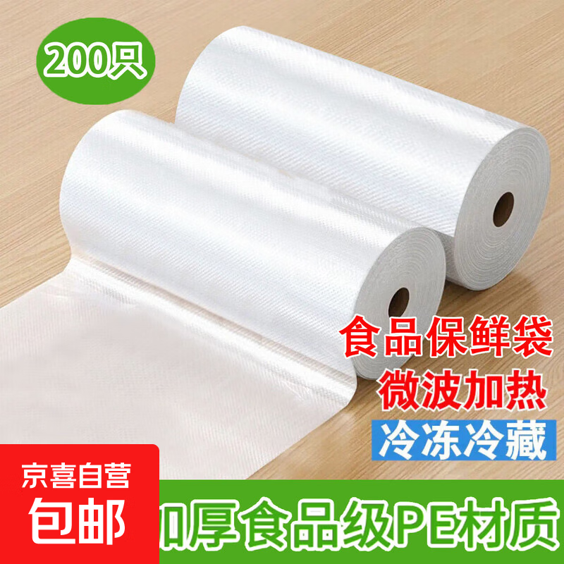 家用加厚PE食品级保鲜袋厨房微波炉点断式手撕收纳密封防尘 中号 25*35cm200只