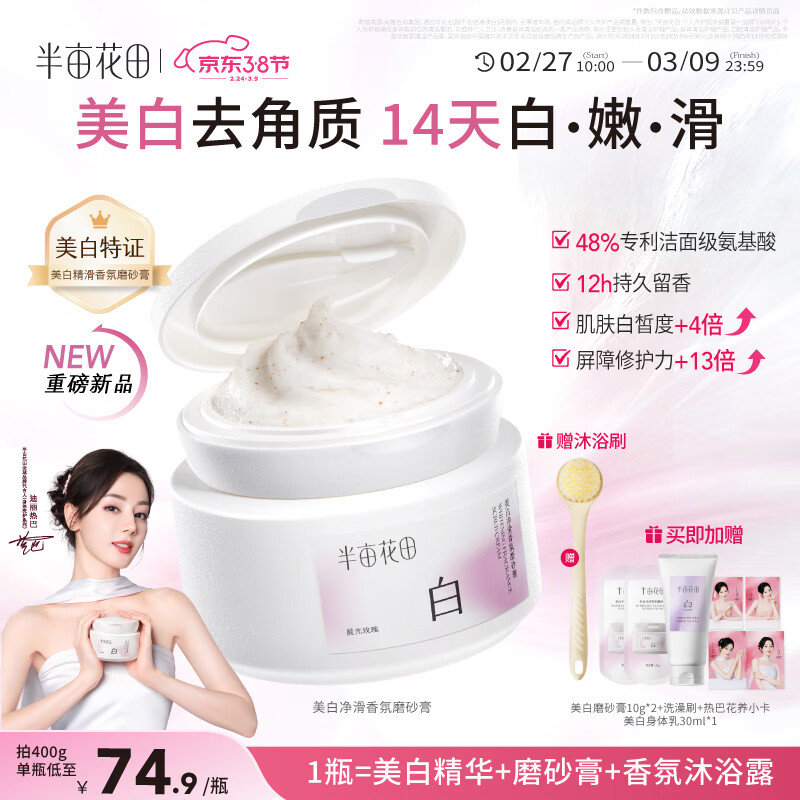 半亩花田热巴同款烟酰胺【美白亮肤】身体磨砂膏果酸去角质嫩白全身搓泥宝沐浴露第1名