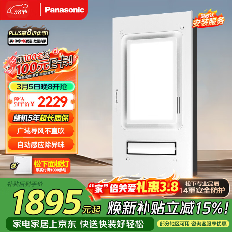 松下(Panasonic)风暖浴霸 大功率速热系列 暖照明排气一体浴室暖风机FV-JDBQVU1-W