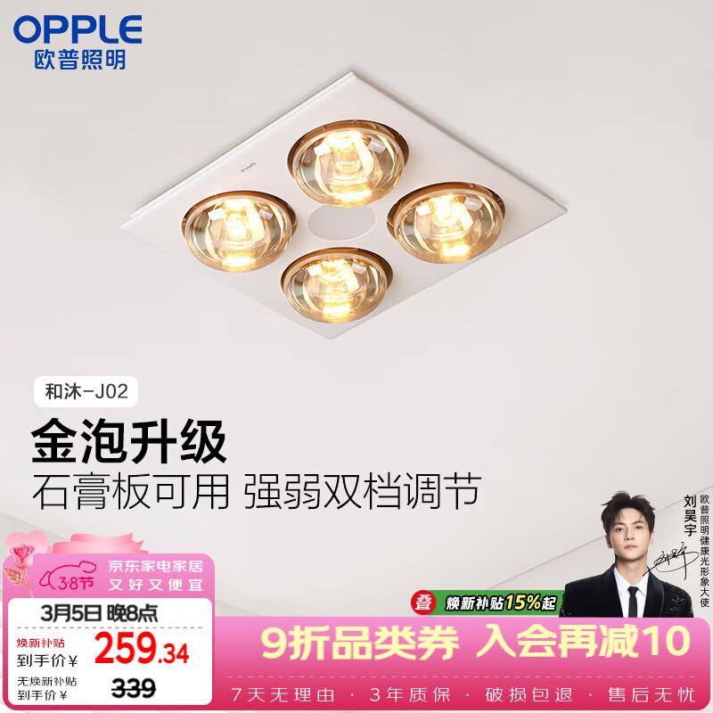 欧普照明(OPPLE)灯暖浴霸普通吊顶系列即开即热浴霸取暖灯照明排气一体 和沐02