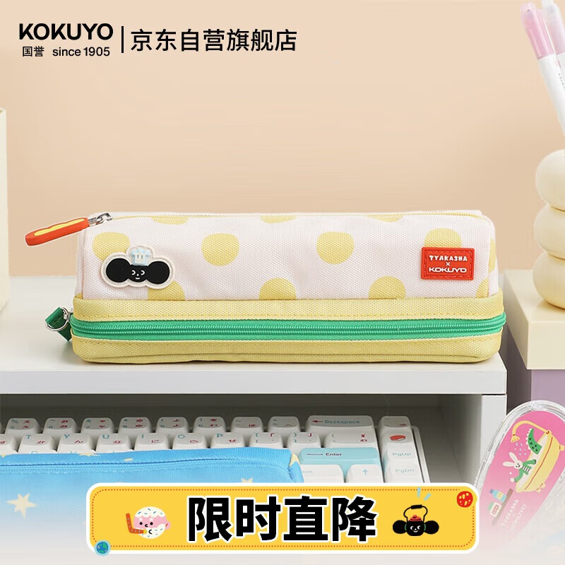 国誉(KOKUYO)Tyakasha塔卡沙联名双层分类收纳学生笔袋女孩男孩高颜值大容量文具盒 涤纶 米黄 1个