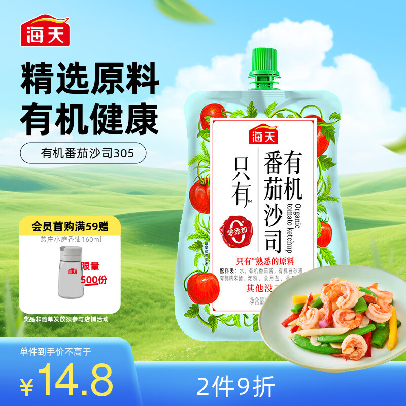 海天 番茄酱 番茄沙司【0添加 有机】305g 调味酱 点蘸调味