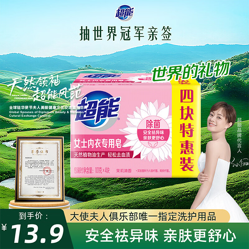 超能 女士内衣皂 茉莉清香 101g*4块 除菌 洗衣皂 安全祛异味