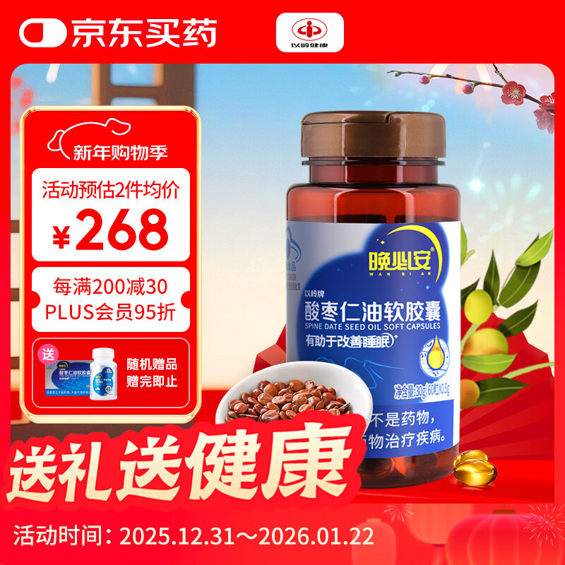 以岭晚必安酸枣仁油软胶囊改善睡眠酸枣仁中药材萃取0.5g*60粒送礼品