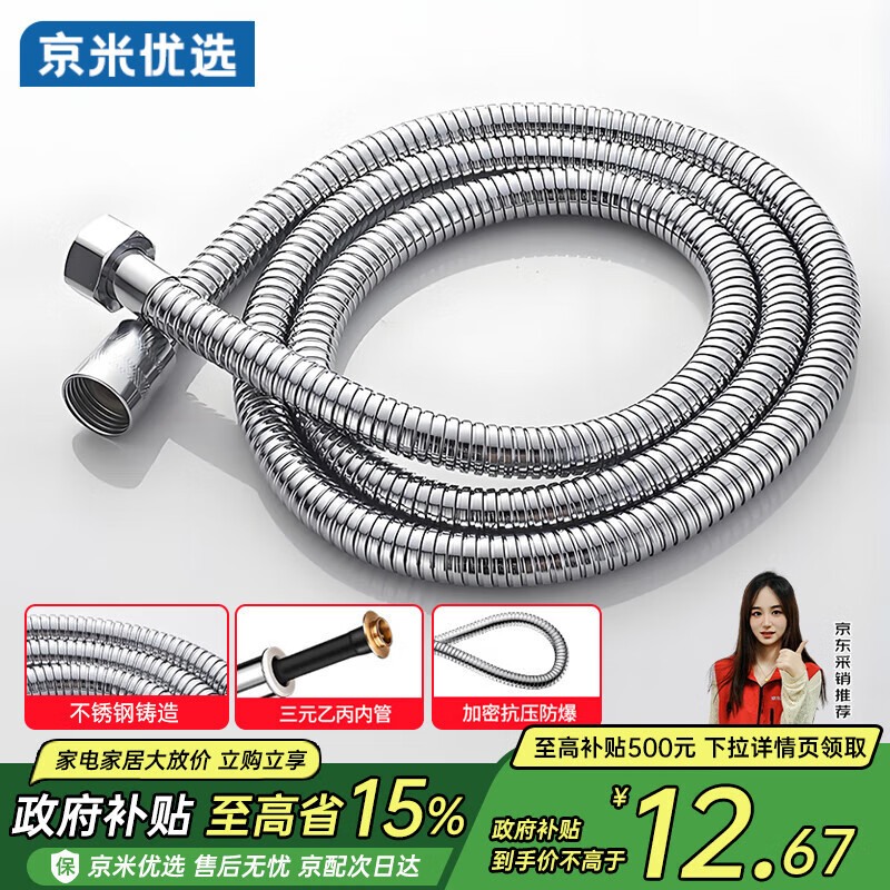 京米优选【国家补贴15%】花洒软管不锈钢1.5米通用淋浴喷头防爆防缠绕水管