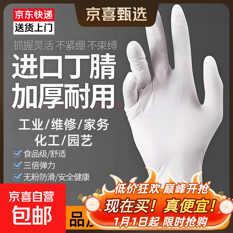 【万人同抢】一次性丁腈手套家务手套防水防油加厚家用加厚家务防油卫生厨房做饭专用 50只装 透明白色均码m码【加厚耐磨】 均码 分指手套 男女同款
