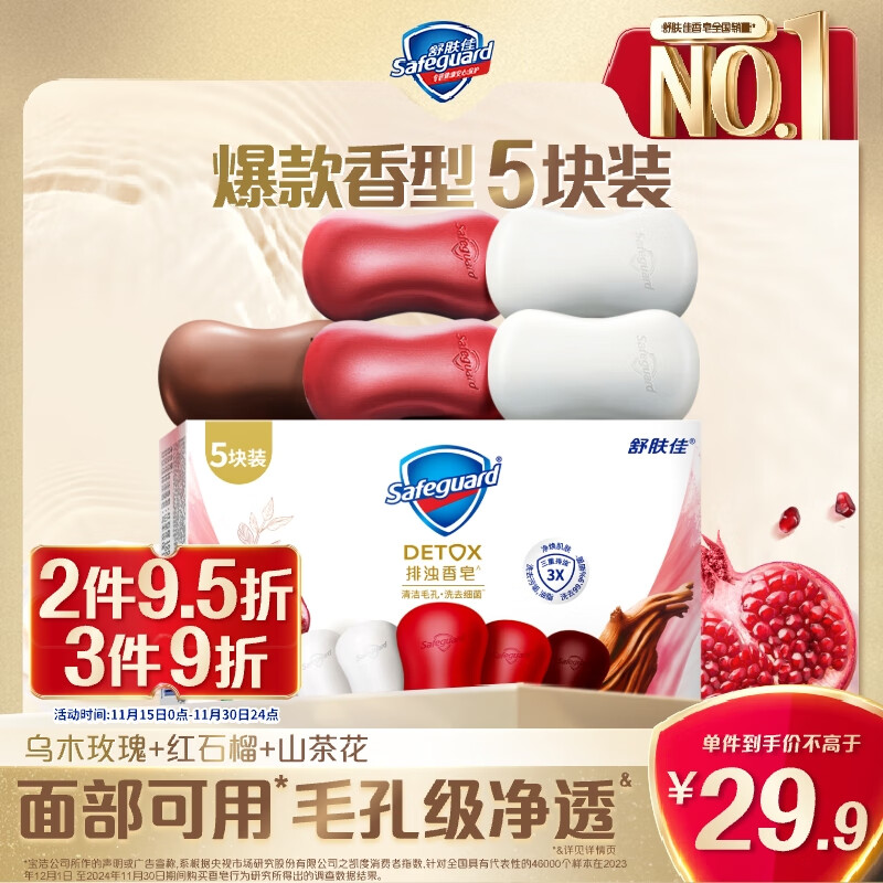 舒肤佳排浊香皂100g*5(乌木玫瑰*1+红石榴*2+山茶花*2)肥皂洗脸洗澡洁面