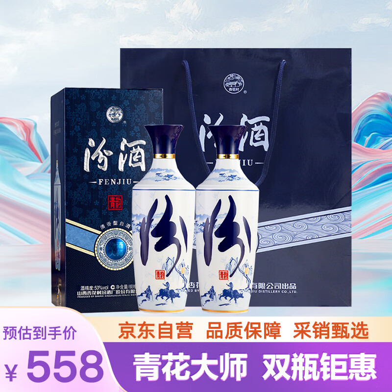 汾酒 青花大师 青韵 清香型 白酒 53度 500ml 双瓶套装