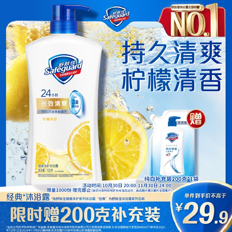 舒肤佳健康净护沐浴露 柠檬香720g 长效清爽 沐浴乳液 新旧包装随机