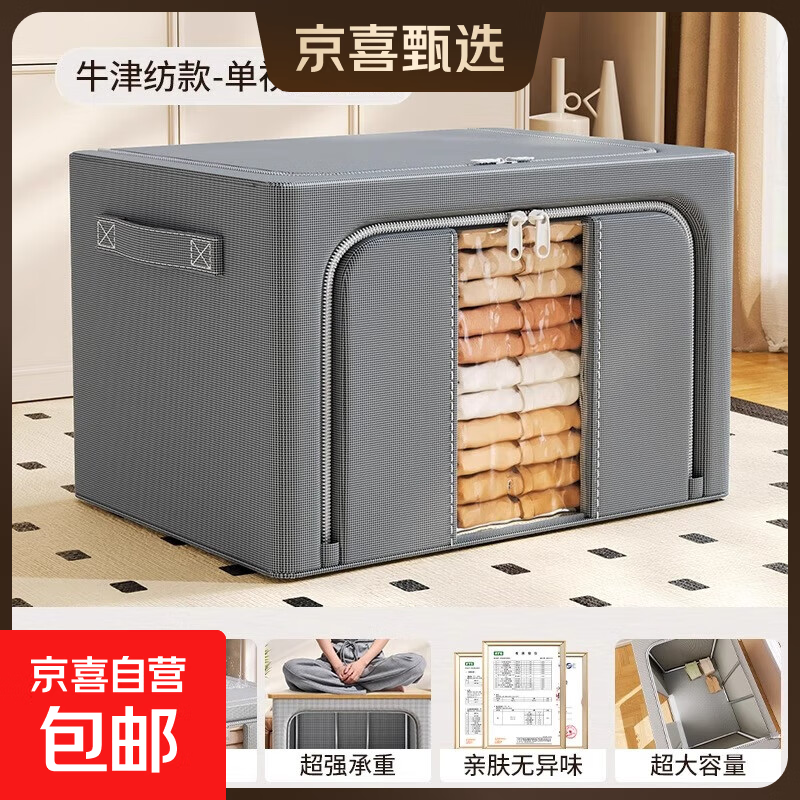 京东物流 布艺衣服收纳箱家用布艺百纳箱衣柜衣物折叠整理盒 深灰色【单视窗】 【1只装】66L(50*40*33cm)
