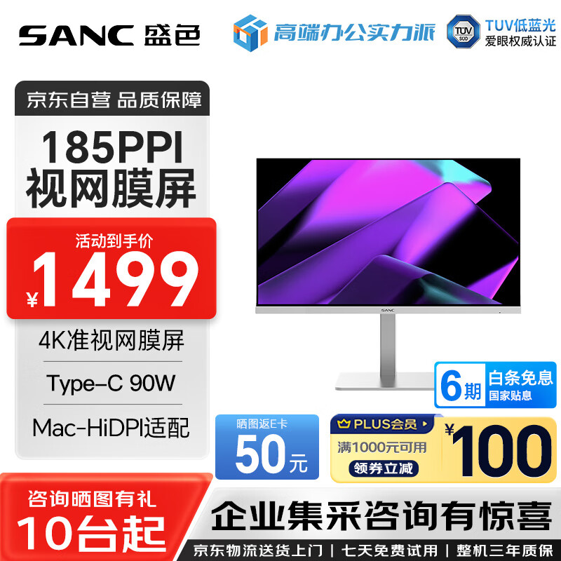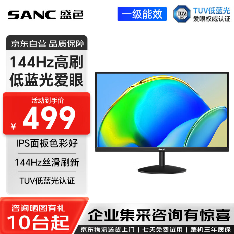 SANC盛色 27英寸IPS显示器 硬件低蓝光 144Hz 广色域不闪屏可壁挂 电脑办公显示屏OF27
