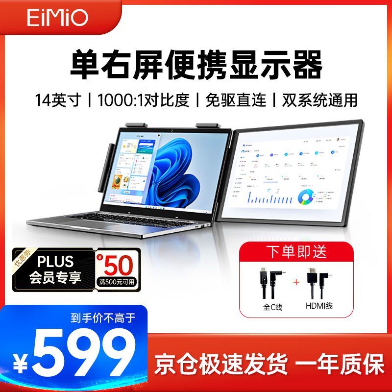 Eimio单右便携显示器14英寸便携屏显示屏笔记本电脑副屏扩展屏幕办公炒股外接屏E24D