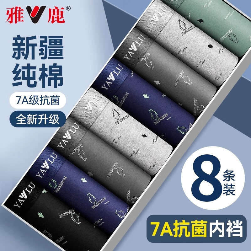 雅鹿8条装男士纯棉内裤男抗菌裆透气吸汗四角裤青少年平角短裤头 DC-CU695 -袋装 8条 3XL [建议130-160斤]