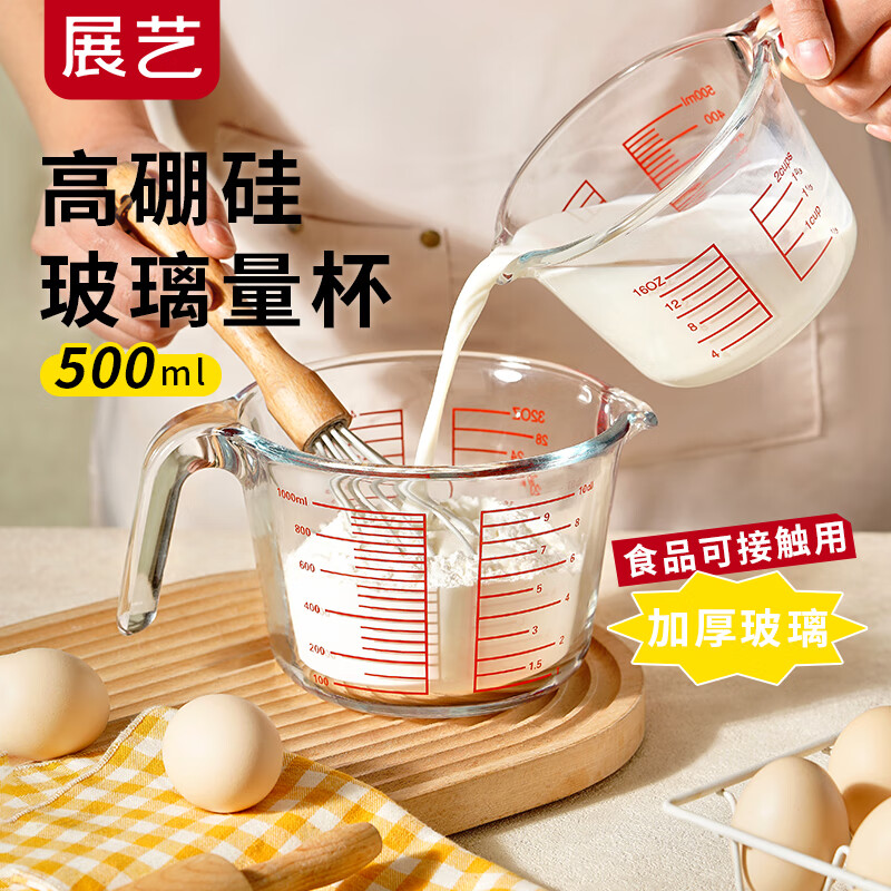展艺高硼硅玻璃量杯500ml加厚刻度耐高温微波炉烤箱烘焙打蛋热奶过滤