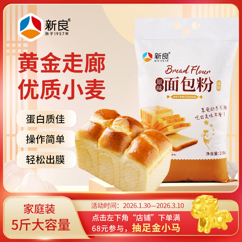 新良原味面包粉5斤装 高筋面粉 烘焙原料 面包机专用小麦粉