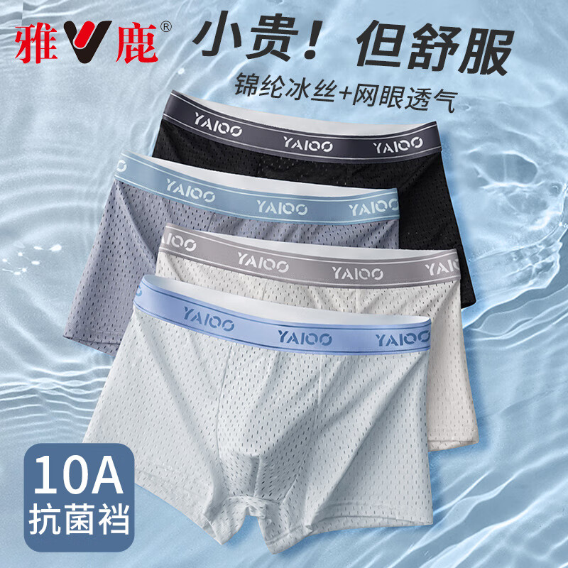 雅鹿4条装内裤男冰丝夏季无痕男士内裤网眼透气平角裤抑菌裆四角短裤 【混色组合】-袋装 2XL [建议120-140斤]