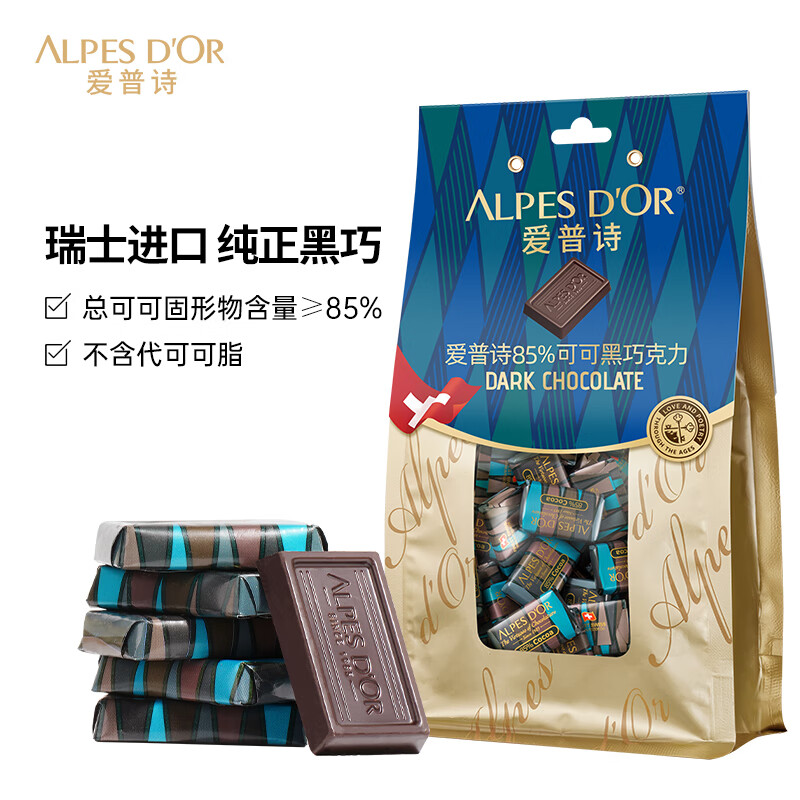 爱普诗瑞士进口 85%黑巧克力252g 运动健身 零食 生日礼物 38女神节礼物